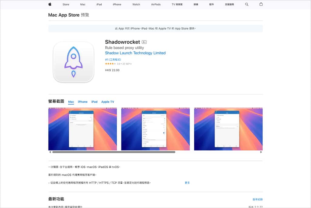 | 港区 App Store | HKD 23.00 | 港区 App Store 下载 Shadowrocket |